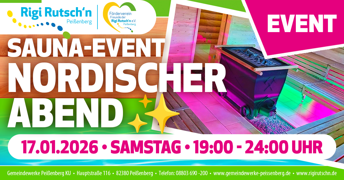 2026Sa17Jan19:00Sa0:00Sauna-Event: Nordischer AbendSauna-Party mit skandinavischem Flair | Details folgen ...19:00 - 0:00
