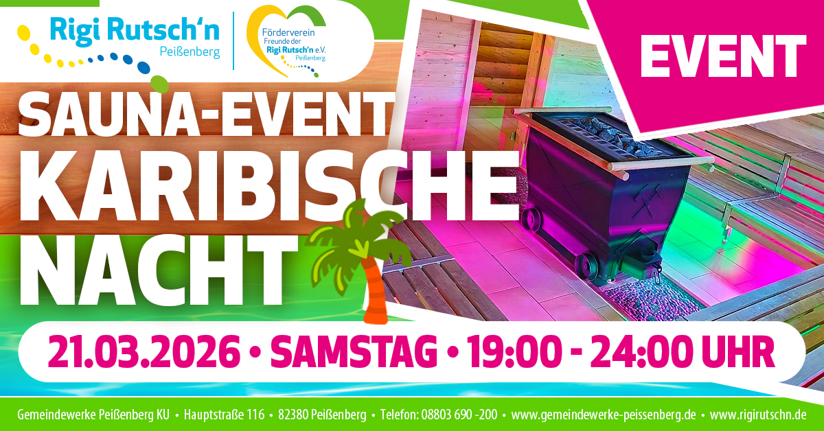 Lass den Alltag hinter dir und tauche ein in eine Nacht voller tropischer Wärme und karibischer Lebensfreude. Bei unserer Karibischen Nacht erwartet dich ein besonderes Saunaerlebnis mit exotischen Aufgüssen, fruchtigen Düften und einer Atmosphäre, die dich direkt an weiße Sandstrände und sanftes Meeresrauschen erinnert.