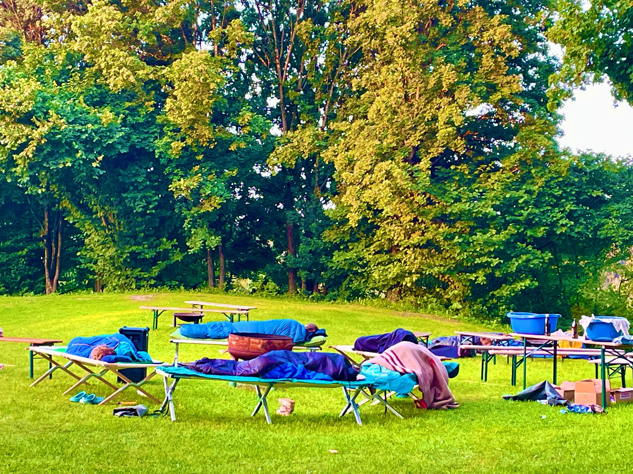 Am Sonntagmorgen begann der Tag ab 7:00 Uhr mit einem gemeinsamen Frühstück, ab 8:00 Uhr war das Schwimmen wieder erlaubt. Bis 10:00 Uhr wurden Zelte abgebaut und der Platz geräumt – im Anschluss konnten die Familien das Freibad im Rahmen des regulären Badebetriebs weiter genießen.